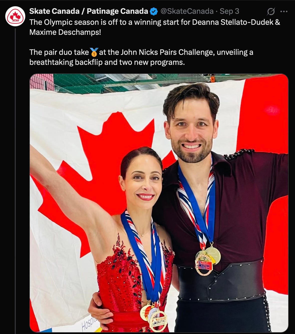 Deanna Stellato-Dudek and Maxime Deschamps will tell you they’re not exactly creatures of social media. But the move they performed during their short program at the John Nicks Pairs Challenge International in New York — it’s being referred to as an “assisted backflip” — got those online forums humming earlier this week.