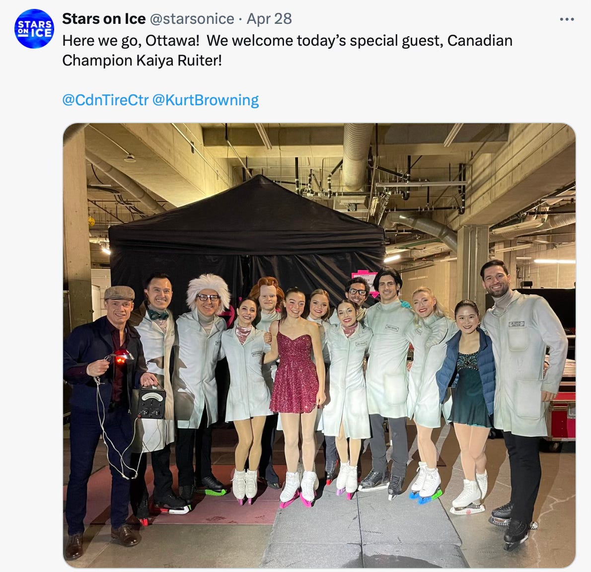 Ah, yes, Stars On Ice. Now might be as good a time as any to veer this piece in that direction. It was back in the middle of May that Ruiter got to be a guest skater with the annual tour across Canada, performing in the show at Canadian Tire Centre in Ottawa — the city in which she was born and first learned to skate on the capital’s venerable haven of winter fun, the Rideau Canal (she still has plenty of family there).
