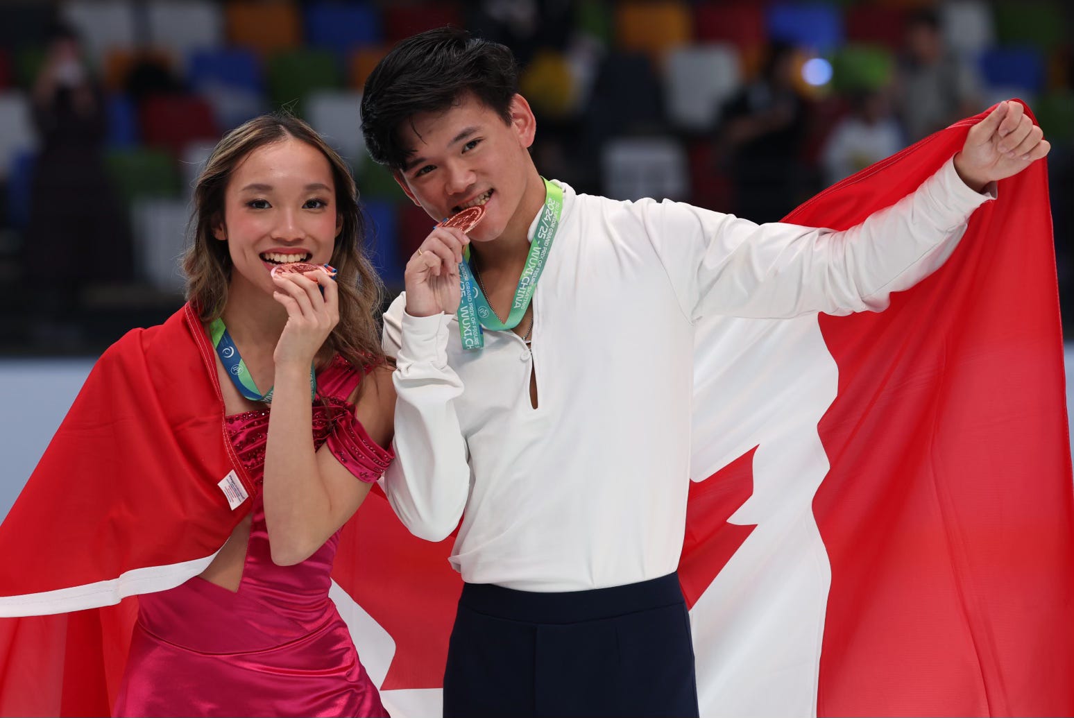 The final stop of the Junior Grand Prix Series is on this weekend in Wuxi, China, with Canada fielding entries in all three disciplines being contested there. It was a medal-winning weekend for Chloe Nguyen and Brendan Giang of Burnaby, British Columbia, finished in third spot after turning in a personal best score of 90.42 in the free dance. They had earlier placed second in the rhythm dance with a season’s best score of 60.55. The young duo, who are coached by Megan Wing and Aaron Lowe, placed fourth in the Bangkok stop of the JGP earlier in the fall. The second Canadian entry, Montreal-based Victoria and Andrei Carandiuc, wound up 12th overall.