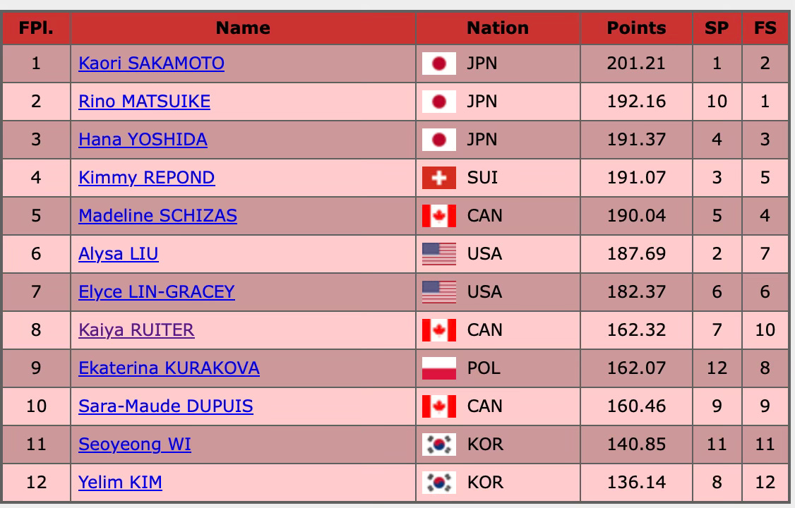 I think the skate of the night was little Rino who, as you say, rocketed to second overall. Her free skate was a joy to behold.