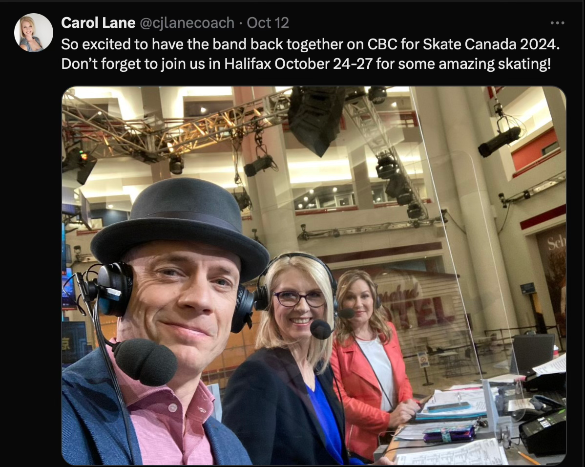 Earlier this week, the post below popped up in our Twitter (or X, officially) feed … word from one of the folks involved that, after a one-year absence, Skate Canada International is returning to the CBC airwaves.